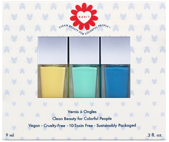 The Baby Trio in Beach House includes three of our bright bestselling shades in travel-friendly sizes. Each set is made with recycled plastic components and packaged in paperboard boxes.